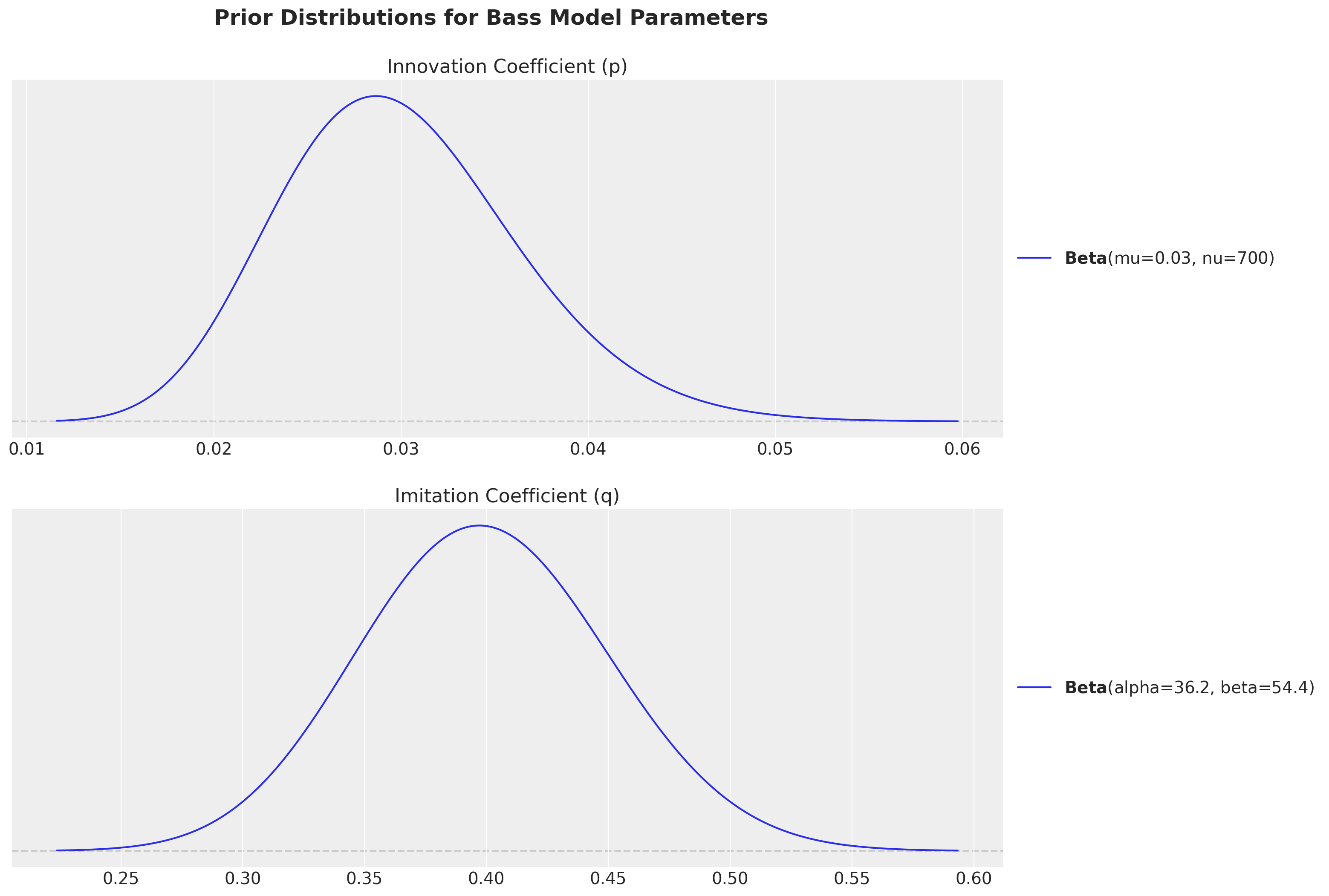 Imitation coefficient (q): Measures internal influence like word-of-mouth - typically \(0.3-0.5\)