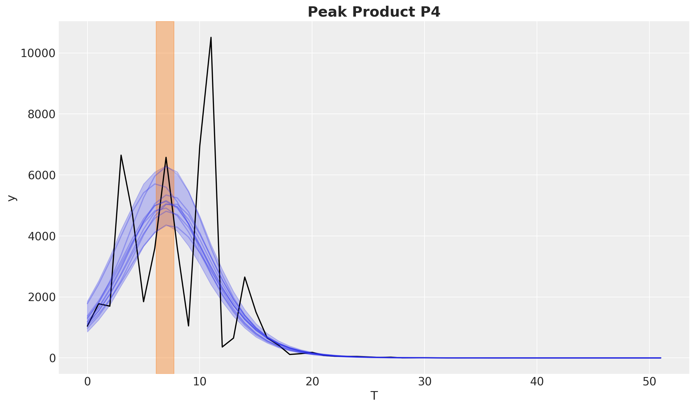 This fits the observed data quite well. Let’s see for example the product P4