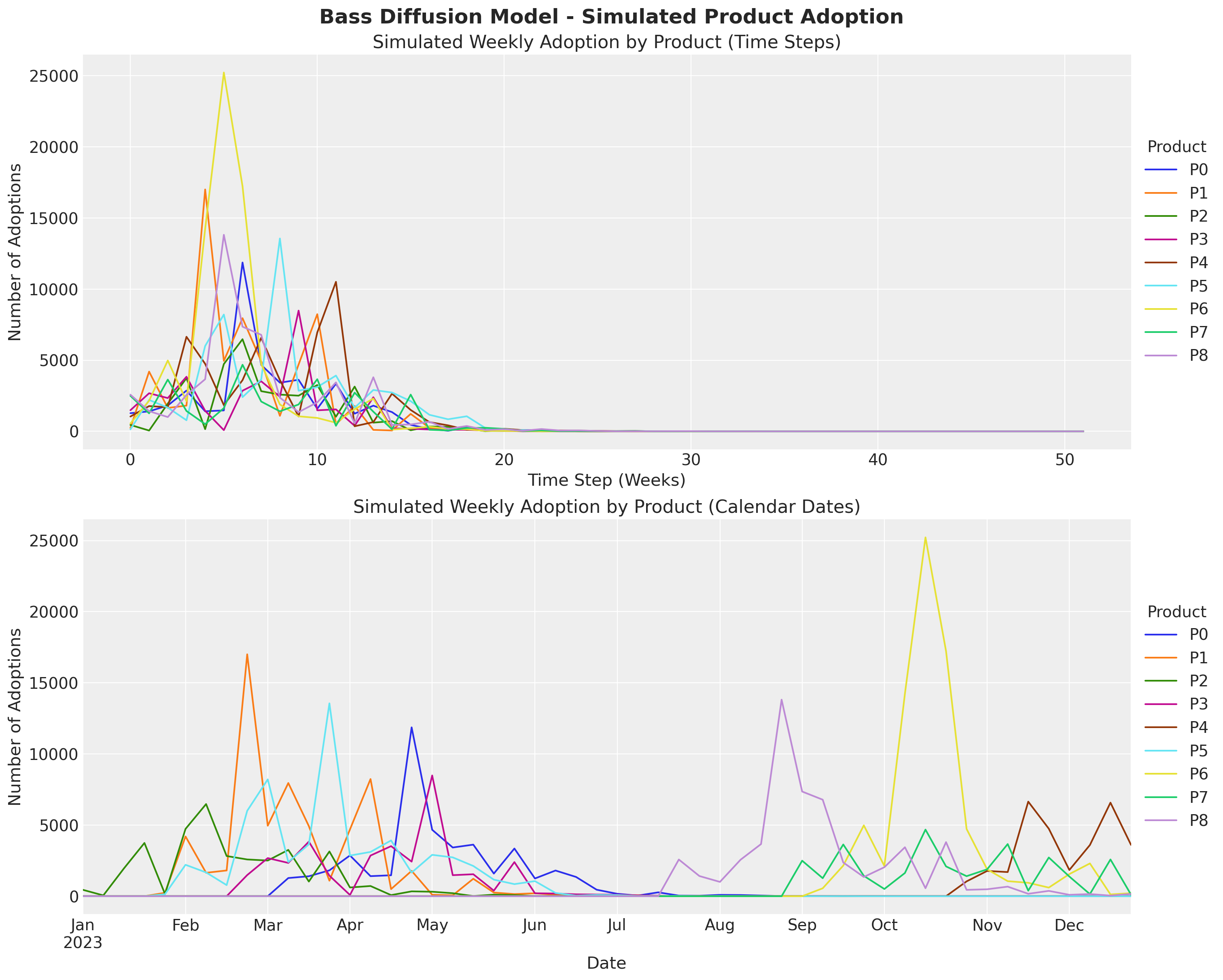Generate simulated adoption data for multiple products