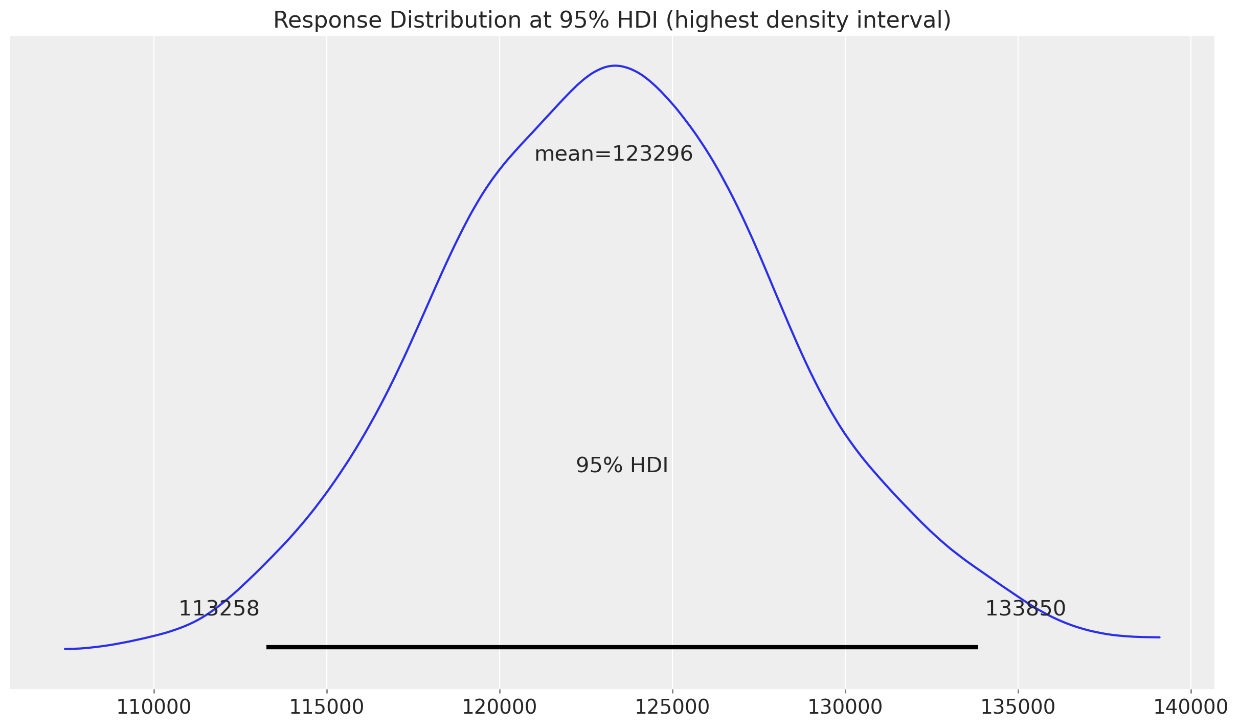 ax.set_title("Response Distribution at 95% HDI (highest density interval)");